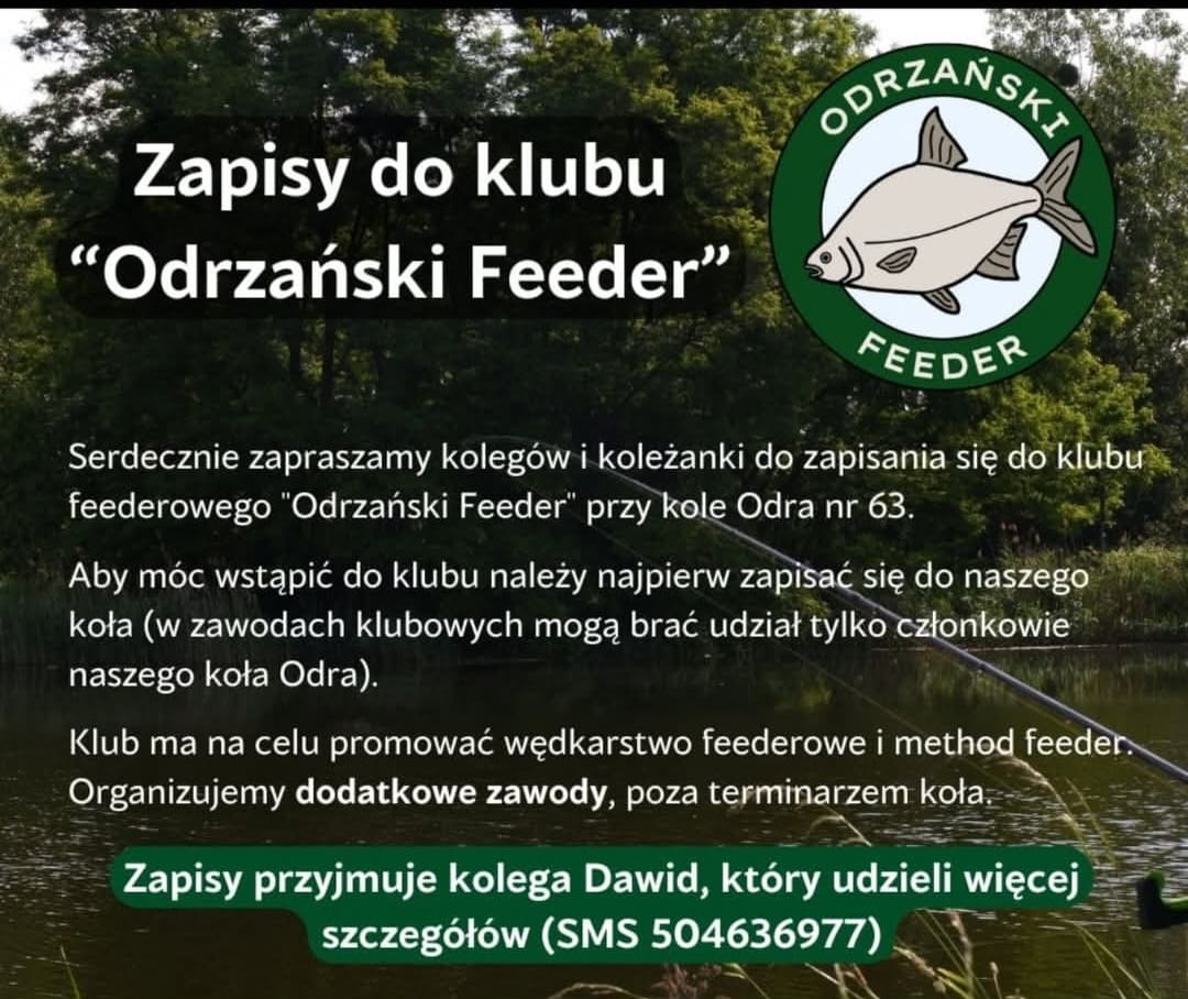 . 29-03-2026 Mistrzostwa Koła Odra w spławiku. Zbiórka zawodników do godz. 7.00 kanał Odry przy ul. Bujwida. Obowiązuje siatka 3,5 m. Zawody będą trwały 4 h. Zapisy do 25 marca SMS 504-636-977